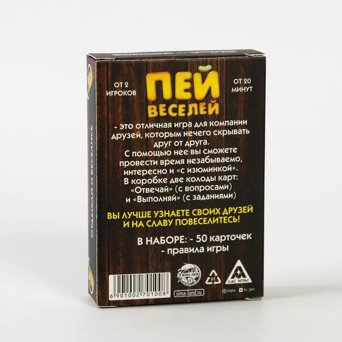 Купить игра для компании "пей веселей" 50 карт от 180 руб. с доставкой до пункта выдачи в Тайшете. Интернет магазин ДекаМаркет. Оплата при получении.